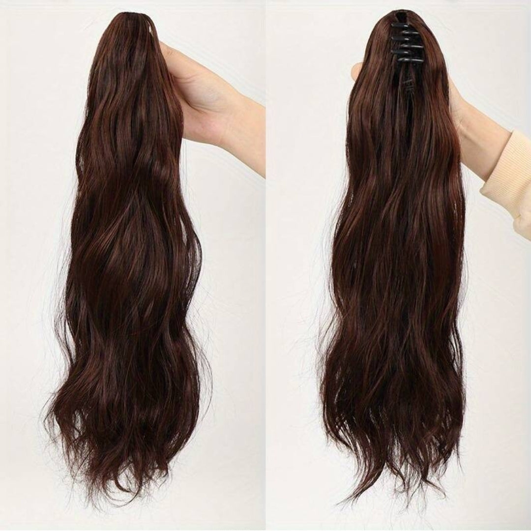 Het synthetische haar is voorgestileerd en super eenvoudig te bevestigen met behulp van een klem - klem het eenvoudig over de bovenkant van je natuurlijke knotje/staart .