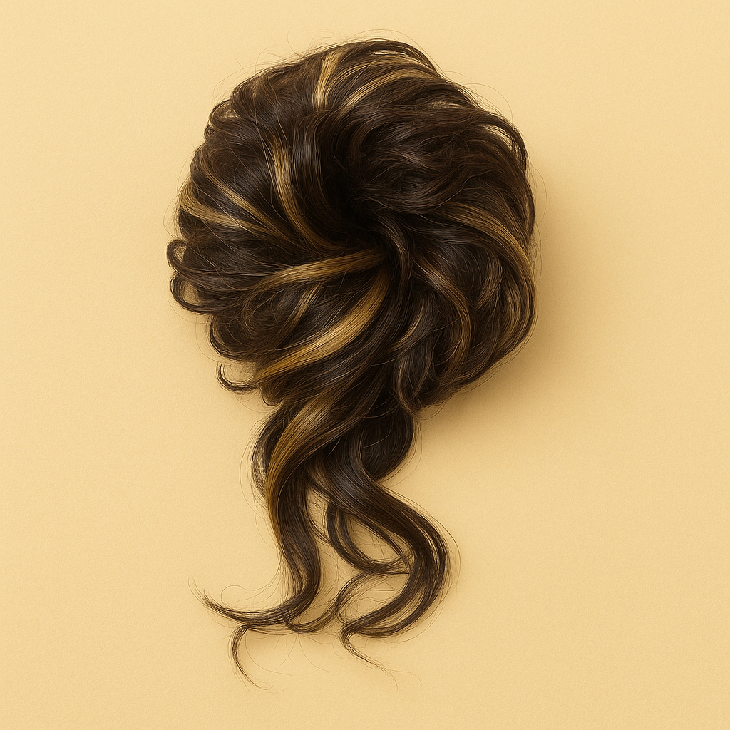 Creëer een stijlvolle, volumineuze knoop zonder moeite met deze handige en trendy scrunchie extensions. Gemaakt van premium synthetische vezel die er natuurlijk uitziet en zacht aanvoelt, biedt dit accessoire je een perfecte rommelige knot-look in slechts enkele seconden.
